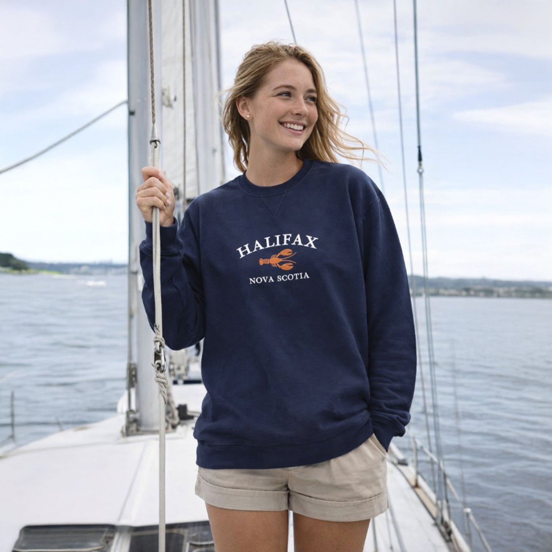 Celebrate Maritime charm with this expertly crafted crewneck featuring an embroidered Lobster. The classic design captures iconic coastal heritage with precision stitching that withstands everyday wear. Perfect for locals and visitors alike, this versatile piece layers effortlessly over tees or stands alone as a statement sweater. Quality construction ensures lasting comfort through countless seasons of Nova Scotia adventures.